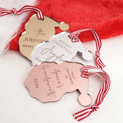 A mirror acrylic Santa decoration is the perfect festive touch for any Christmas tree. Each piece is laser cut into a cheerful Santa silhouette and available in mirror gold, silver or rose gold, adding a magical shine that reflects the lights beautifully. Personalise it with your own Christmas message to create a keepsake that feels truly special.