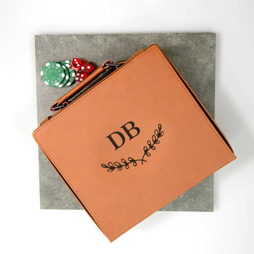 View full detailsEngraved Tan Leatherette Poker Game Set