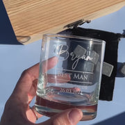 Custom engraved with their name and wedding date on the wooden box lid, the recipient will then open to find a premium European made scotch glass, with a matching inscribing. With six artwork options to choose from, this is a very unique bridal party gift.