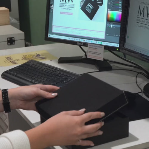 Made from black leatherette, with your personalised message and artwork of choice engraved in white on the lid, the box then also has a host of hidden goodies inside - golf balls, tees and one a ball marker are nestled comfortably with the interior.