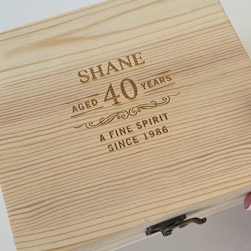 Both the glass and the wooden box are professionally engraved with your chosen design or initials, making it a truly personal keepsake they’ll treasure. Ideal for birthdays, Christmas, retirement, or just because, this set turns every sip into an experience.