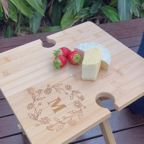 Engraved Bamboo Picnic Table with BONUS two Wine Glasses