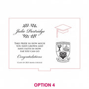 Select from a broad range of artwork and design options or create your own personalised message and design to create a truly bespoke graduation gift. Purchase individually or for a group graduation.